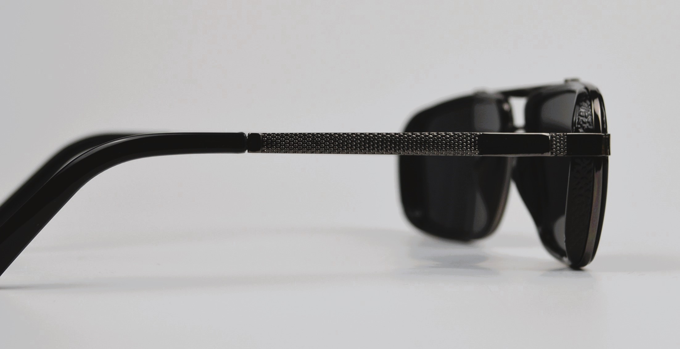 Polariserade solglasögon med glasögonbågar i metall.